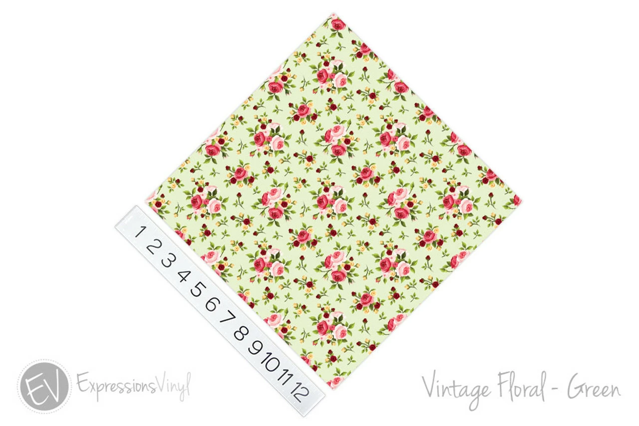 12"x12" Patterned Heat Transfer Vinyl - Vintage Floral - Green -EXPRESSIONS VINYL Sales Vintage Floral Green 59157.1523987315