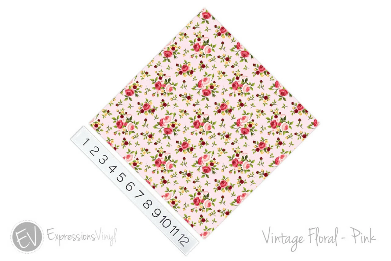 12"x12" Patterned Heat Transfer Vinyl - Vintage Floral - Pink -EXPRESSIONS VINYL Sales Vintage Floral Pink 81696.1523987370