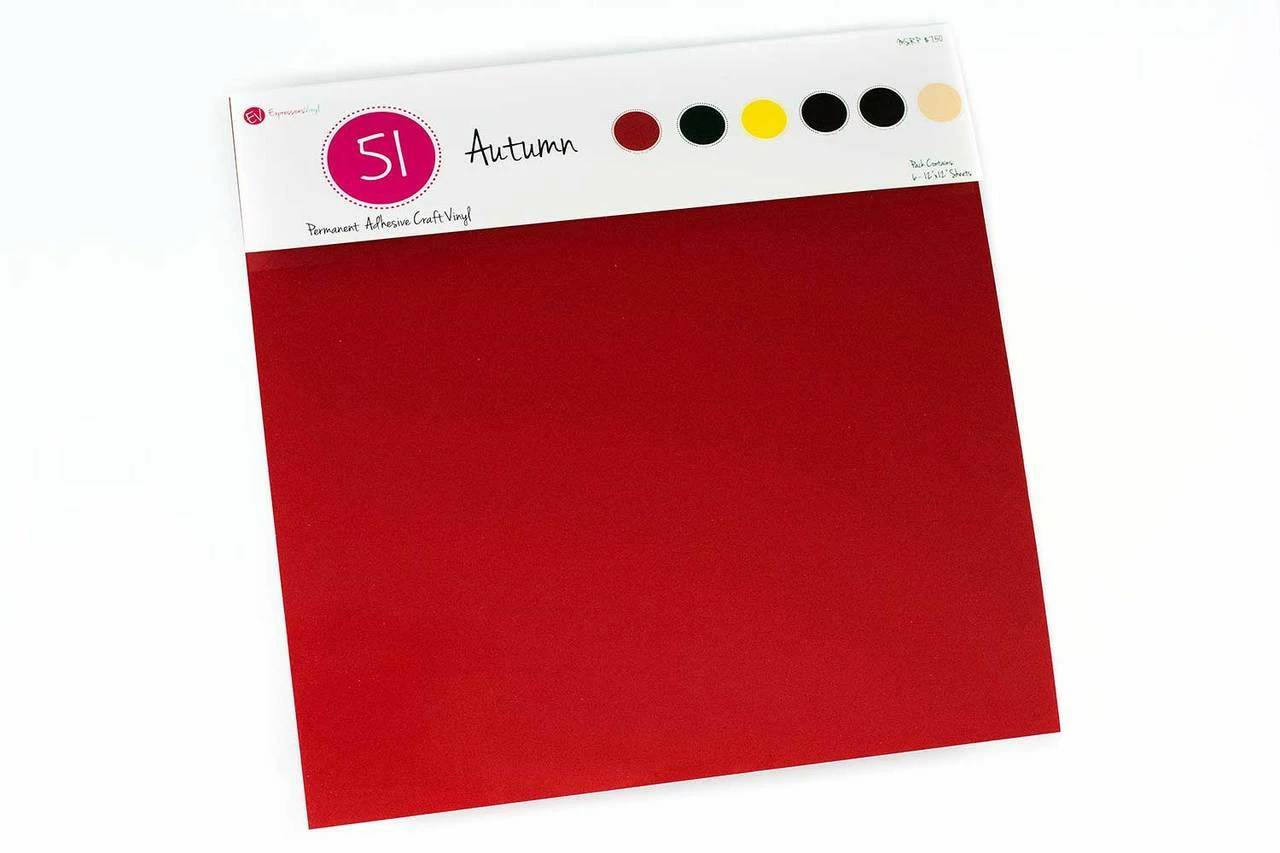 The 12″x12″ Outdoor Color Packs include 6 sheets of 12″x12″ Expressions Vinyl Series 51 gloss finish vinyl. This vinyl has an adhesive backing and a liner to protect the adhesive until it is exposed and ready for use. Outdoor vinyl is compatible with all personal hobby and craft cutters including: Cricut, Silhouette, Xyron, Craft ROBO, Graphtec, Quickutz, Inspirations, Pazzles, etc. and is perfect for home décor, signs, stencils, scrapbooking or any temporary application.