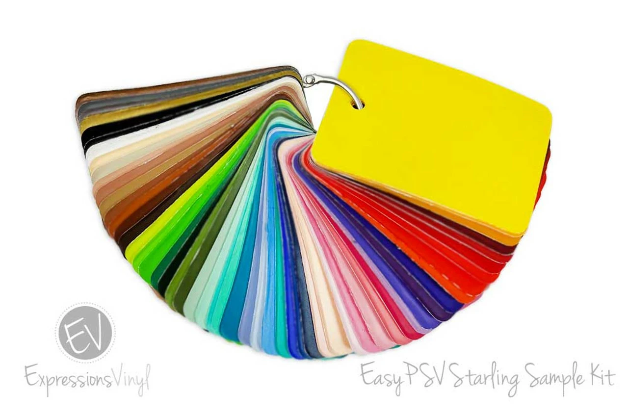 We do our best to represent our colors on our site as accurately as possible. But the best way to see exactly what our colors look like is with an actual sample. The Sample Kits are made up of 2″x3″ samples of vinyl in various categories and come on a ring. The sample kits that we offer are divided into categories so that you’re able to get the ones you want and use.