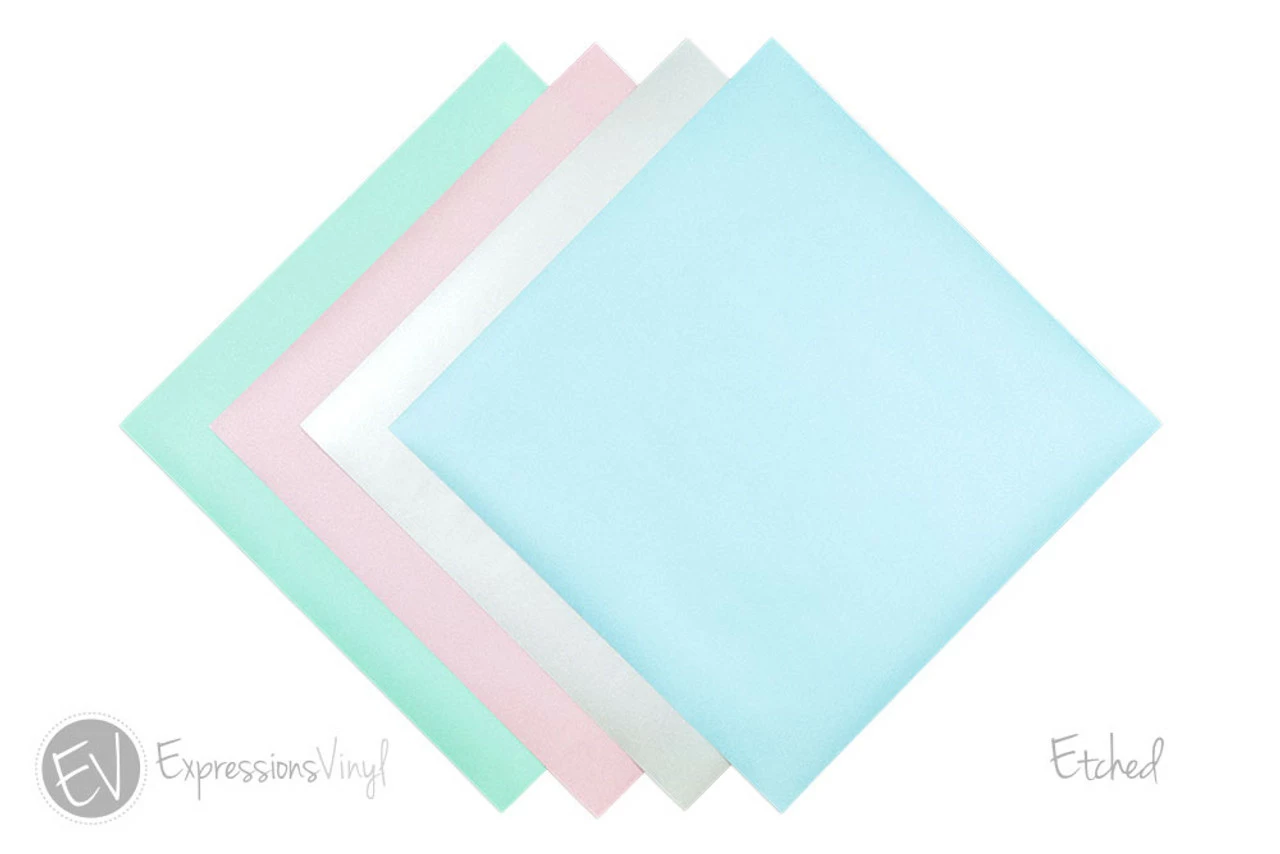 - Includes one 12″x12″ sheet of each color offered in our Etched Glass vinyl series: Red, Blue, Green and SilverÂ