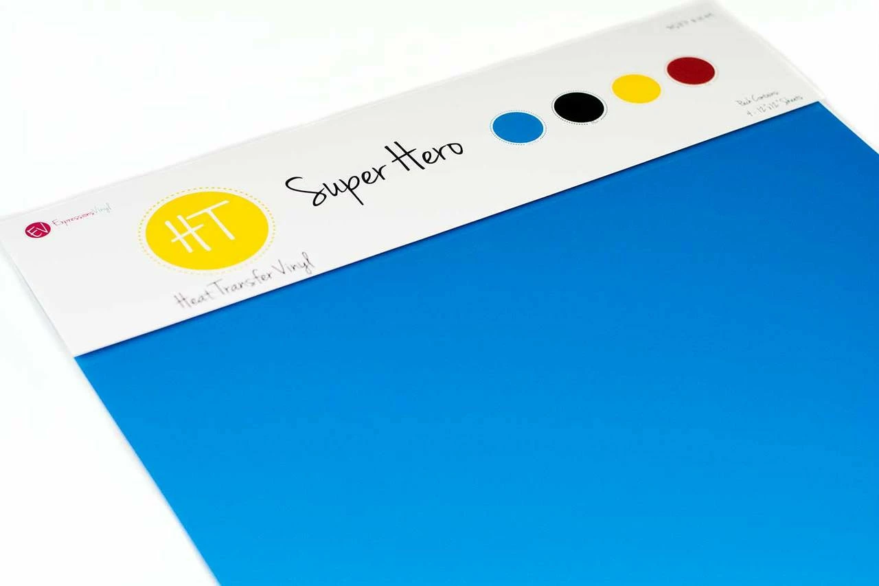 - Super Hero Pack Includes 12″x12″ Sheets of Siser Easyweed: Sky Blue, Black, Yellow, and Red